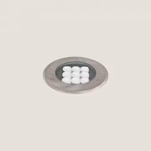 Markspot i rostfritt stål med fixtur för nedsänkning med asymetrisk ljusspridning. Tålig och mycket lätt att installera med IK10.