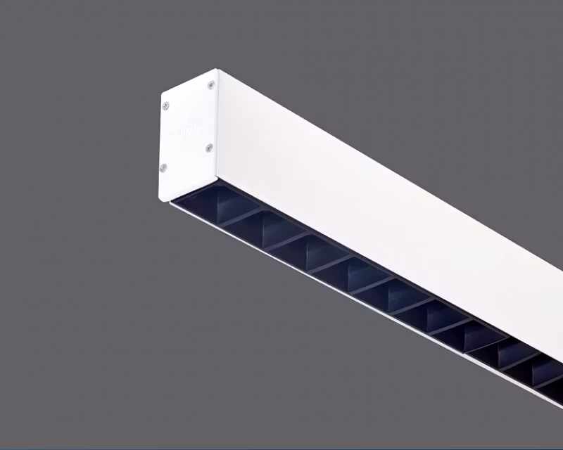 Linjär armatur för takmontage eller nedpendlat. Tillverkad i aluminium och med mörkt bländskydd som ger ett mycket lågt UGR (<16). Olike alternativ för styrning, nödljus funktion m.m. (kontakta kundtjänst).