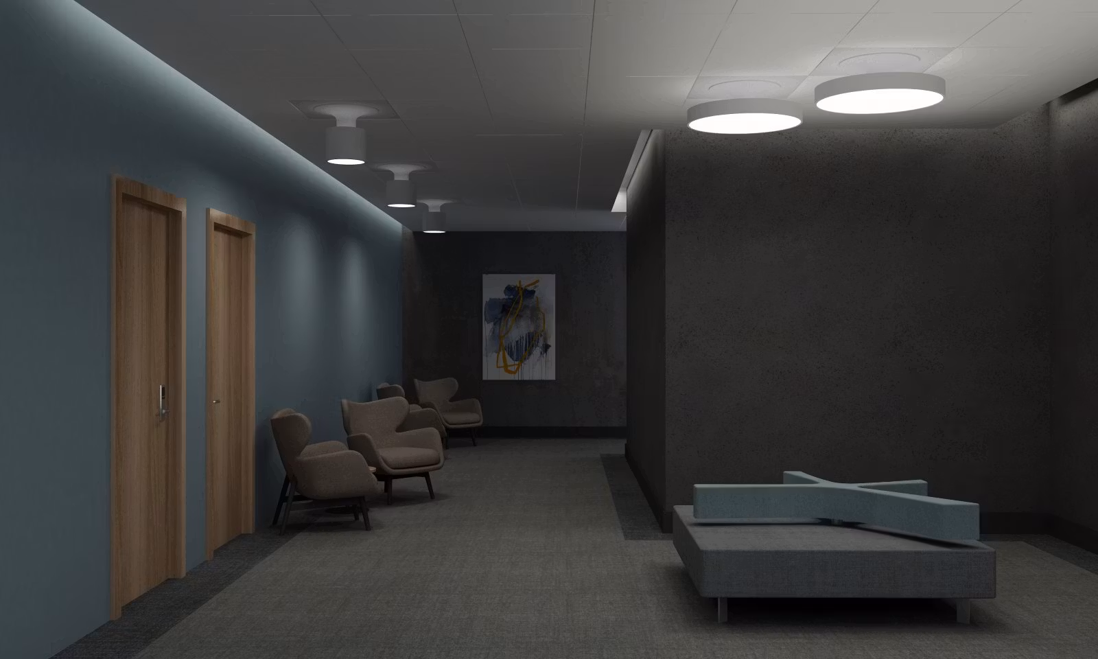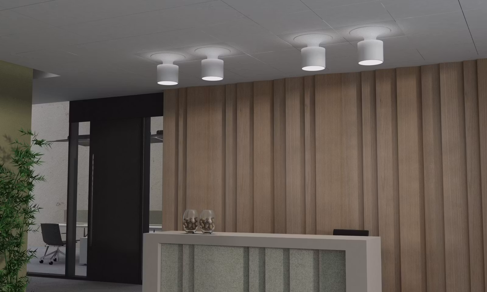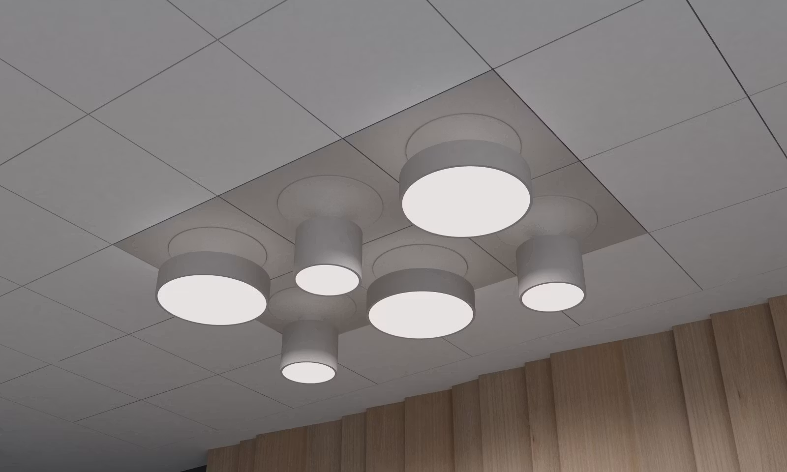 Infälld takarmaturtillverkad i aluminium med opalvit diffusor. Styrsystem som tillval (DALI, 1-10V, Tunable white)