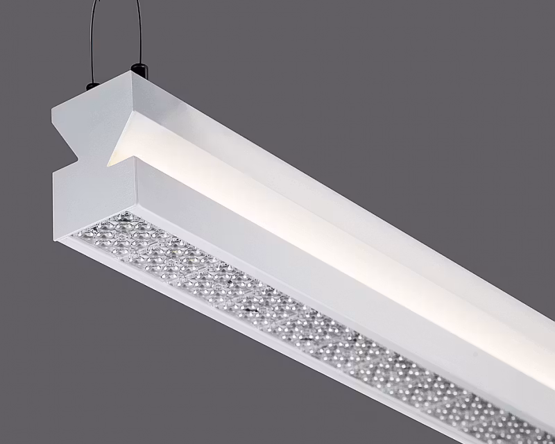 Nedpendlad linjär armatur för kontor, konferens och liknande med direkt och indirekt belysning.. Tillverkad i aluminium med diffusor i opalvit polykarbonat. Styrning finns som tillval (DALI, 1-10V) samt nödljusfunktion.