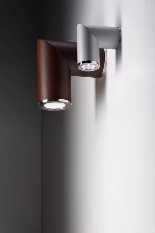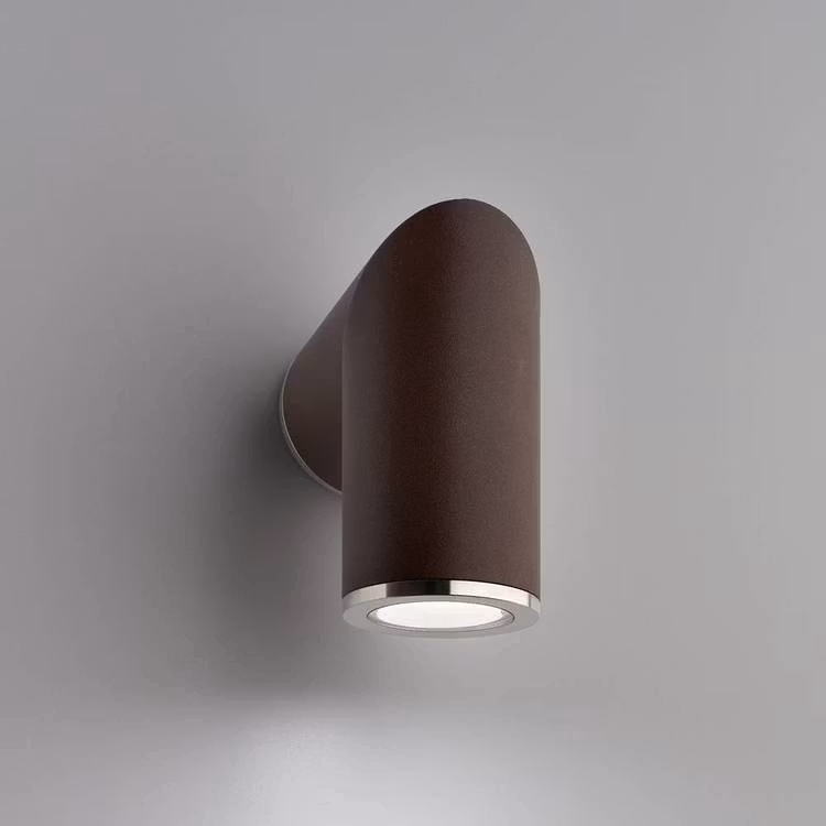 Väggarmatur för inomhus eller utomhus tillverkad i mässing. Intern transformator. Väl avbländad med en perfekt ljusbild.